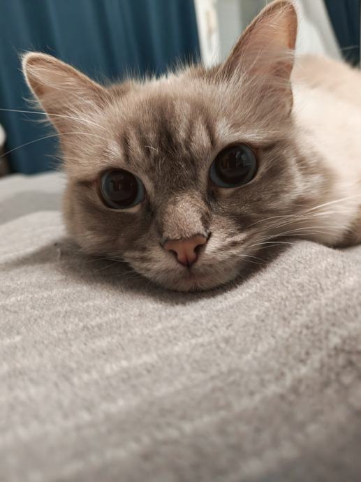Tražimo nove vlasnike koji bi imali strpljenja sa njom jer joj treba mrvicu duže vremena da se privikne na nove ljude ali kad se privikne, prati ih poput sjene, jako je mirne naravi i ne radi nikakvu štetu (grebe samo po svojoj grebalici, uredno sve obavlja u zatvorenom mačjem wc-u).