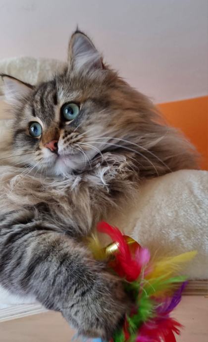 Sibirski Neva Masquerade mačić iz uzgajivačnice Batony's registrirane u WCF-u, uzgojen s puno pažnje i ljubavi, traži svoj novi dom. Dostupan je kao ljubimac..