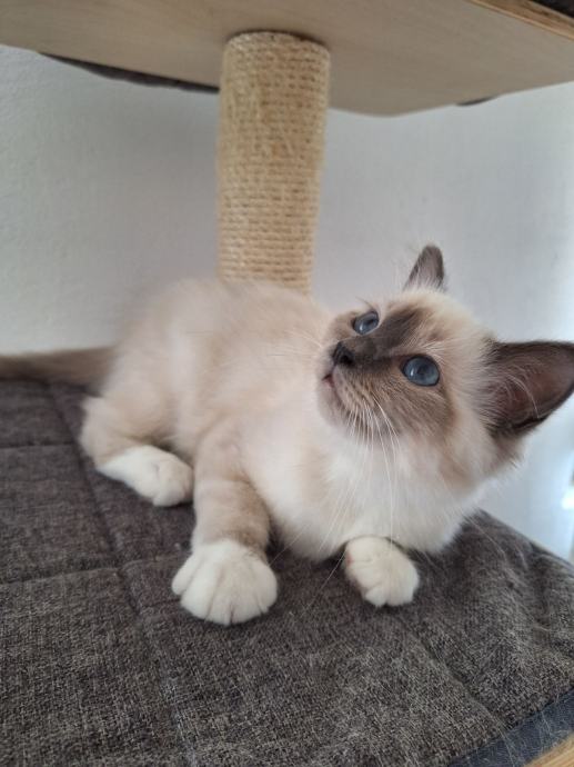 Mačak star 9 meseci od oca Svetskog Šampiona i majke Internacionalnog Šampiona Blue Point, roditelji poseduju gevetske testove. Mačak je učestvovao na Svetskoj izložbi u Budimpešti pravilani čarapica