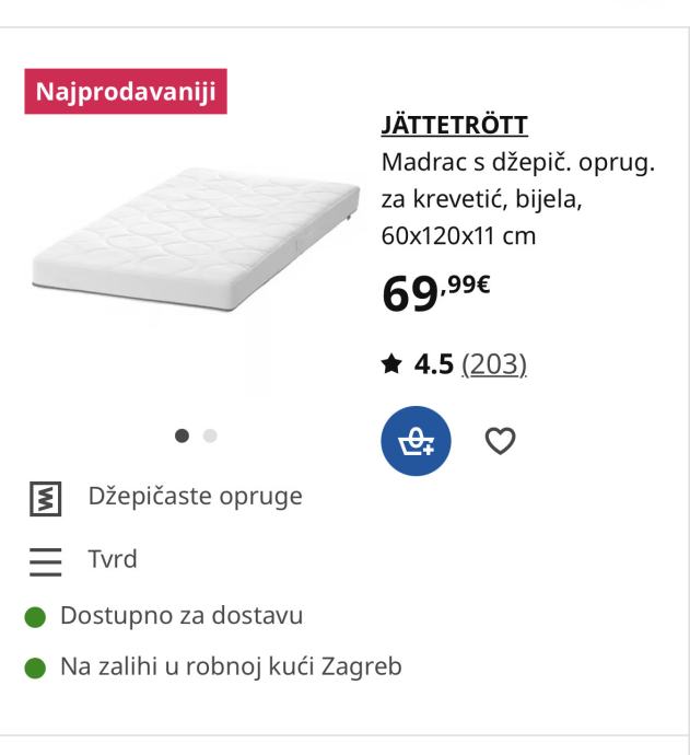 Prodajem kvalitetan djecji madrac kupljen u IKEA, nije koristen. Cijena je 35 EUR.