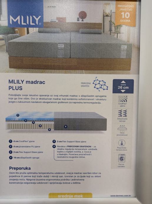 Dormeo Mlily madrac 160x200 cm. Kupljen u sijecnju 2026. Malo korišten.