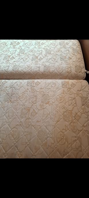 Dva kvalitetna madraca s kokos jezgrom , "jogi" kupljena u Meblu, 80x200, debljina 20 cm, antibakterijska zaštita presvlake, plus gratis dvije podnice s letvicama (na jednoj podnici su se letvice malo olabavile).