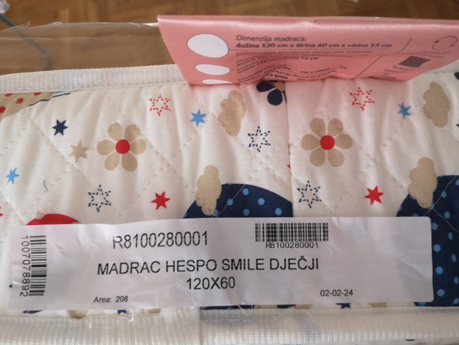 Prodajemo novi madrac za djecji krevet Hespo Smile, dimenzija 60x120.
