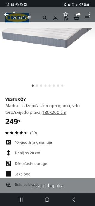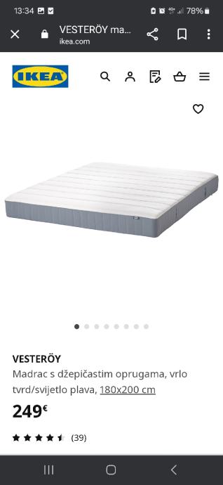 Prodaje se novi IKEA madrac Valevag velicina 180×200, visina 24cm, tvrd, rolo pakiranje