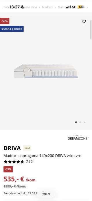 Madrac s oprugama 140x200 DRIVA srednje tvrd