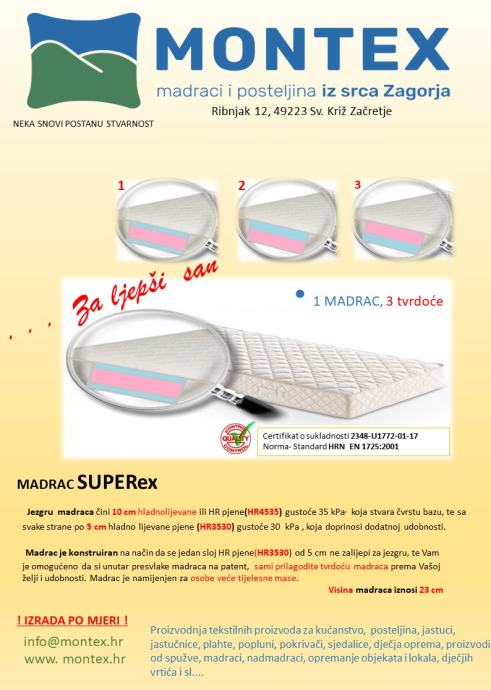 Jezgru madraca čini 10 cm hladnolijevane ili HR pjene(HR4535) gustoće 35 kPa, koja stvara čvrstu bazu, te sa svake strane po 5 cm hladno lijevane pjene (HR3530) gustoće 30 kPa , koja doprinosi dodatnoj udobnosti. Madrac je konstruiran na način da se jedan sloj HR pjene(HR3530) od 5 cm ne zalijepi za jezgru, te Vam je omogućeno da si unutar presvlake madraca na patent, sami prilagodite tvrdoću madraca prema Vašoj želji i udobnosti. Madrac je namijenjen za osobe veće tijelesne mase.
