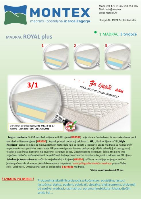 Madrac je konstruiran na način da se jedan sloj HR pjene(HR3530) od 5 cm ne zalijepi za jezgru, te Vam je omogućeno da si unutar presvlake madraca na patent, sami prilagodite tvrdoću madraca prema Vašoj želji i udobnosti. Omogućena Vam je prilagodba 3 tvrdoće madraca.