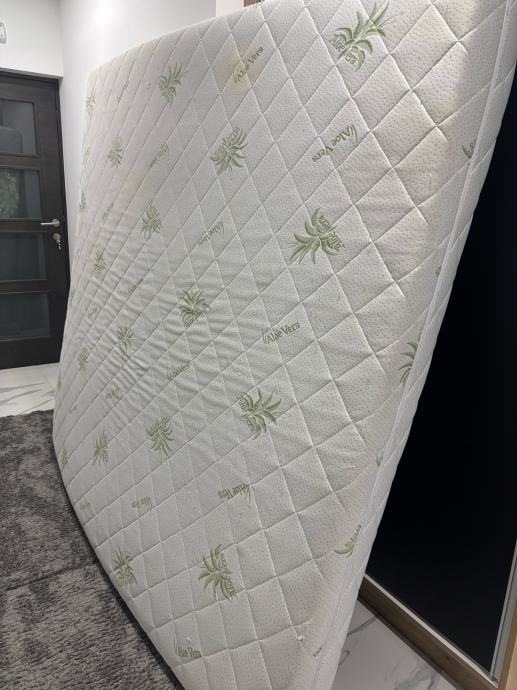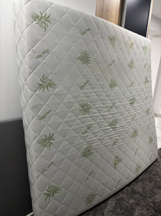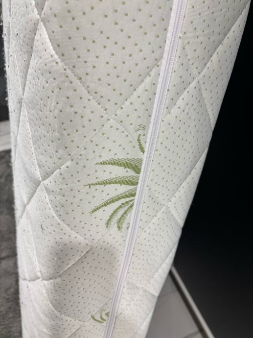 Prodajem madrac dimenzija 180x200 cm s memory pjenom i aloe vera presvlakom. Presvlaka je bijele boje s karakterističnim zelenim uzorkom aloe vera motiva, prošivena u dijamantni uzorak. Sa strane se nalazi zip koji omogućuje skidanje i pranje presvlake. Madrac je namijenjen bračnom ležaju standardnih dimenzija. Presvlaku je potrebno oprati, može se prati u perilici. Jedna strana madraca je tvrđa druga mekša. Mekša strana nekorištena i nova.