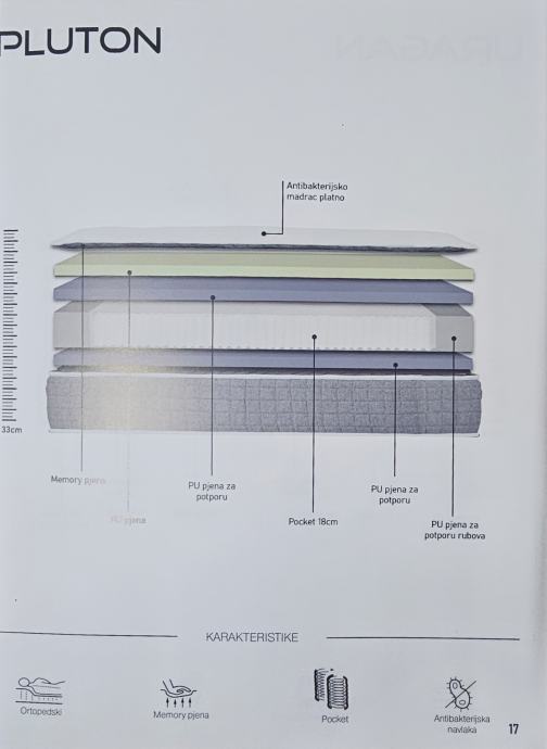 Madrac sa visokokvalitetnom jezgrom koja se sastoji do đepicaste jezgre i memory pjene ukupne debljine 33cm