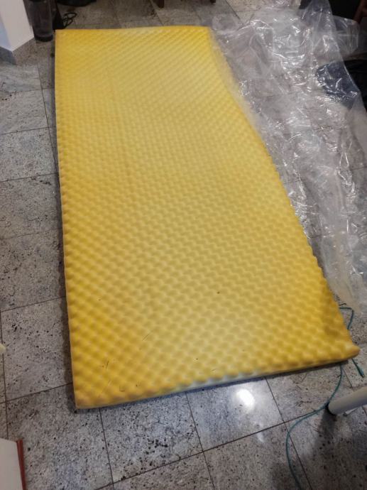 Madrac/nadmadrac od pjene (poliuretanska pjena), dimenzije 200 cm x 95 cm i debljina 7 cm. Izvrsno stanje, malo korišten. Kupljen u JYSK-u. Pogodan za omekšavanje tvrdog kreveta, za kampiranje, auto. (20 eura)