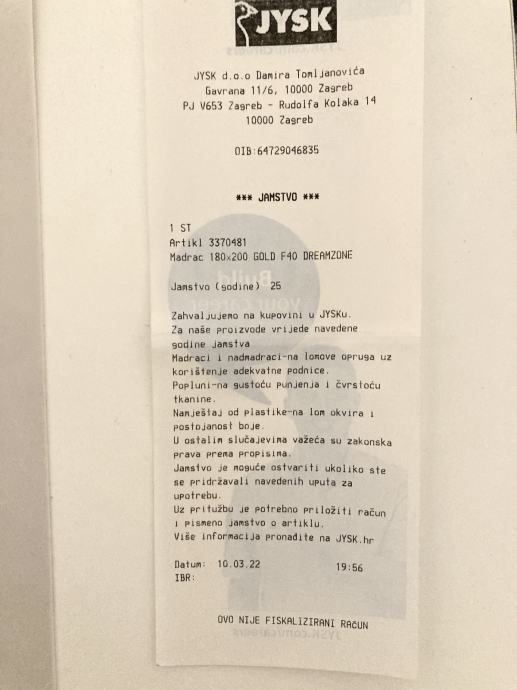 Madrac kupljen u JYSKU u ožujku 2022.g. Vrlo mekan i udoban madrac. Visina madraca je 20cm. Zapakiran u foliju, spreman za transport.