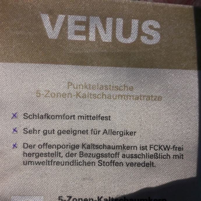 Vrhunski Venus madrac od hladno lijevane pjene (vrijednost madraca u Emmezeti je 130 € koliko je i plačen).