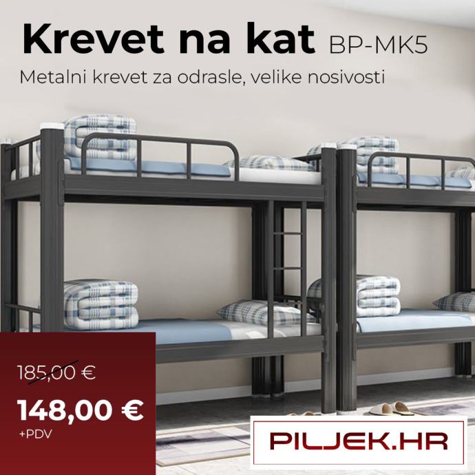 Iz ponude izdvajamo metalne krevete (zasebne) već od 85€+pdv, na kat već od 99€+pdv i madrace visine 12cm 49€+pdv, visina 13cm 59€+ pdv , visina 15cm 65€+pdv.