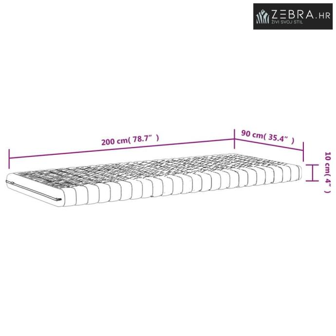 Ukupne dimenzije: 90 x 200 x 10 cm (Š x D x Deb.)