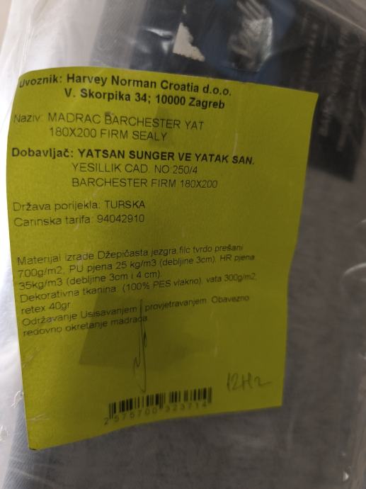 Nov madrac, neotpakovan. Dimenzije nam ne odgovaraju.