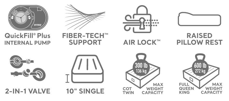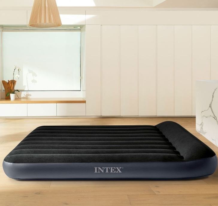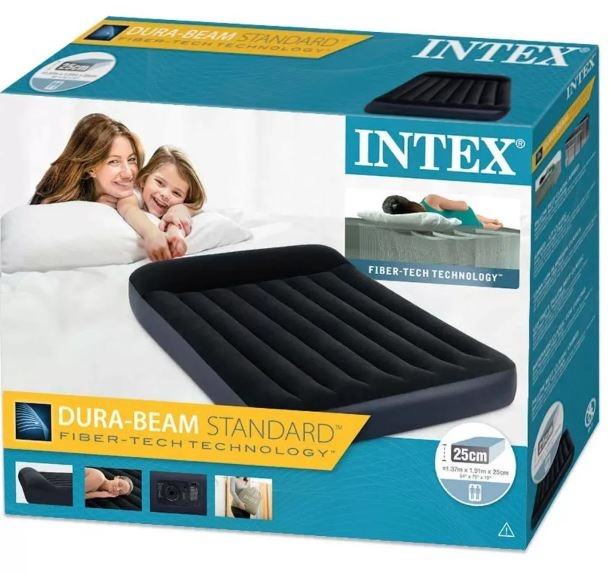 Intex krevet na napuhavanje sa ugrađenom pumpom koja napuhava krevet za 2 minute. Krevet ima i ugrađeni jastuk. Podignut je 25 cm od poda, tako da nemamo osjećaj da spavamo na podu. Krevet na samonapuhavanje ima gornji sloj presvučen vrlo mekanim i na dodir ugodnim materijalom, tako da donja plahta nije potrebna. Mekani gornji sloj može se prati vlažnom krpom i blagim sapunom i ostaviti da se osuši bez upotrebe sušilice. Iznutra je ojačan fiber-tech tehnologijom, što povećava udobnost i izdržljivost kreveta.Šifra: 64148Dimenzije: 137 x 191 x 36Komplet za popravak uključen.Ugrađeni jastuk.Za 2 osobe.Najveća dopuštena težina: 272 kgTorba uključenaAC 220-240V pumpa ugrađena u krevet.Težina: 4,8 kg