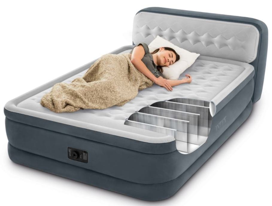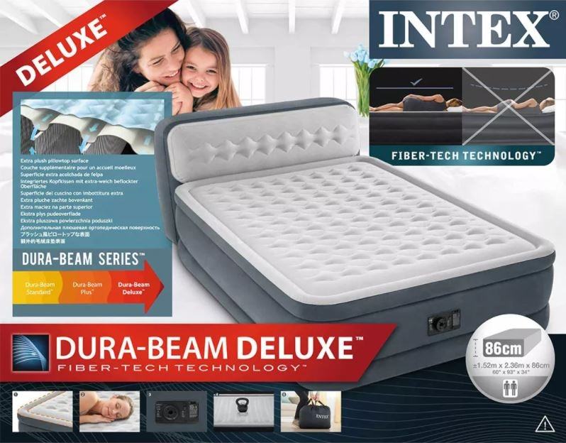 Samonapuhavajući krevet s naslonom Ultra Plush Dura-Beam s ugrađenom pumpom, koja ispunjava krevet za 5 minuta. Vodoravno postavljena barijera u kombinaciji s jedinstvenom rubnom konstrukcijom osigurava vrhunsku stabilnost. Unutrašnjost je ojačana tehnologijom Fiber-Tech ™ koja povećava udobnost i trajnost kreveta. Podignut je od tla 46 cm, pa je lakše ustati. Krevet na napuhavanje ima gornji sloj prekriven vrlo mekanim i ugodnim materijalom na dodir. Novi model ima dodatno ojačane donje i gornje rubove!Naslon na napuhavanje pruža dodatnu udobnost tijekom čitanja, gledanja televizije i još mnogo toga.Šifra: 64448Dimenzije: 152 x 236 x 86 cm (visina sa naslonom)Dopuštena težina: 272 kgPogodno za 2 osobeUključen komplet za popravak.Torba uključenaPumpa AC 220-240V ugrađena u krevet.Težina: 12,4 kg
