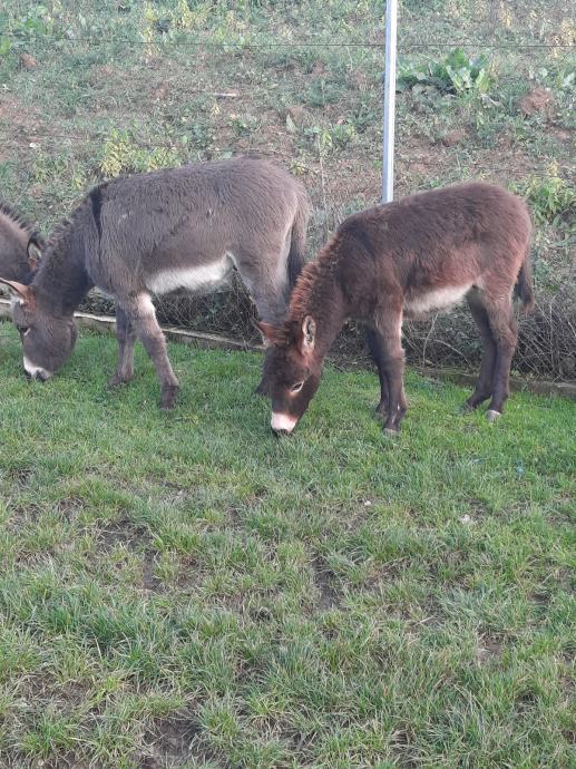 Prodajem muške mlade magarce, tri komada, može pojedinačno. Stari su oko 10, 6 i 3 mjeseca. Čipirani i s knjigama, nisu za poticaj. Mirni i umiljati, naučeni na djecu, ljude i životinje. Oko 2500 kn po komadu.