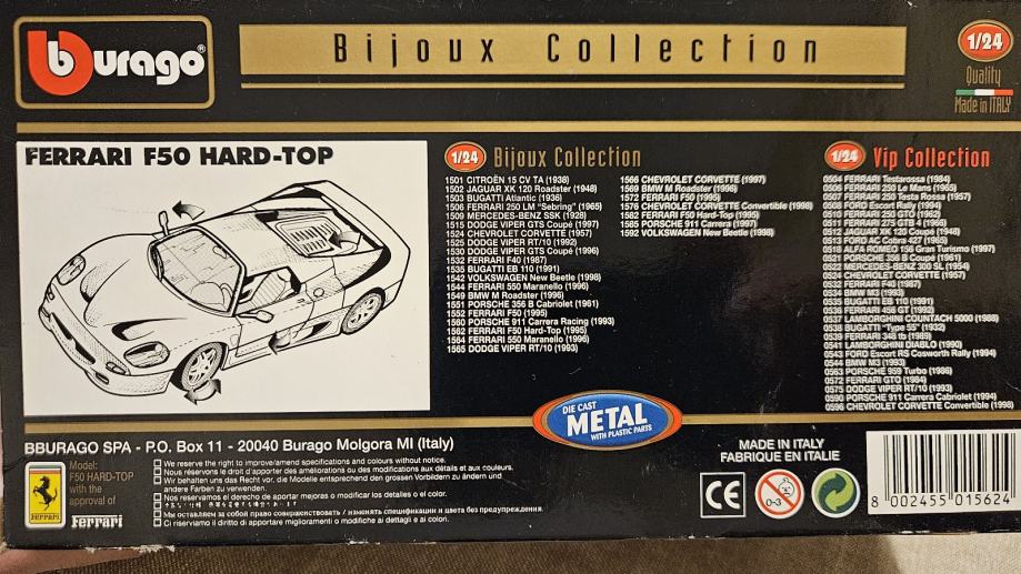 Maketa Burago Ferrari F50 Hard-Top 1995 u mjerilu 1/24.