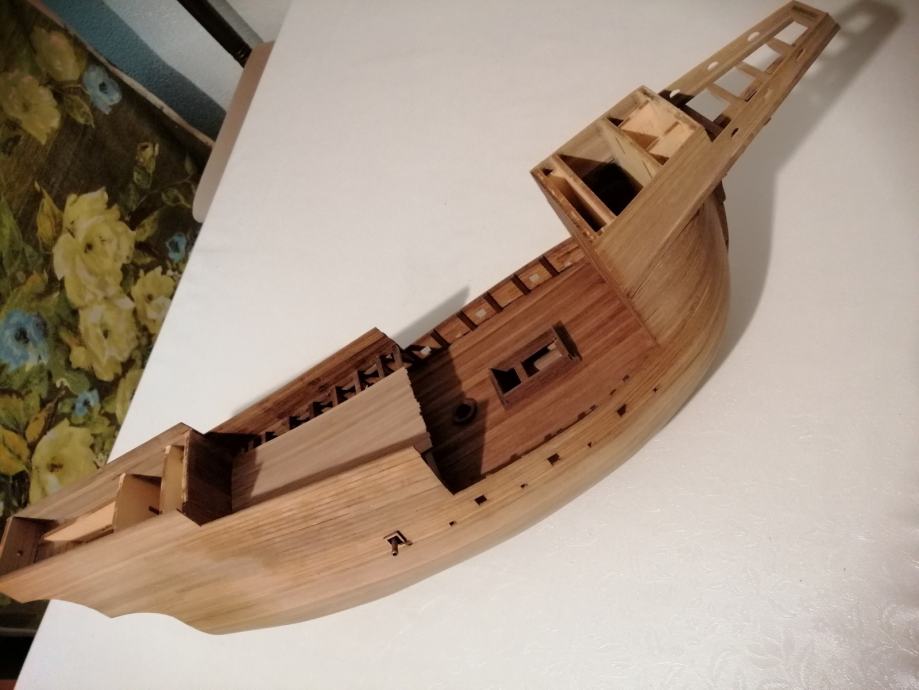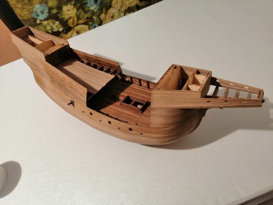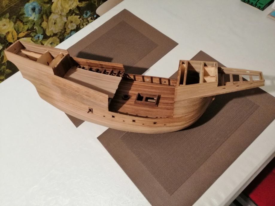Kobilica i statve izrađene su od punog orahovog drva, kao i svi elementi na palubi i bokovima. Jedra su vezena na tkanini. Konstruktivni elementi rezani su laserom. Sav potreban materijal za izradu ove makete nalazi se u montažnom kompletu. Upute su napisane na hrvatskom i engleskom jeziku.
