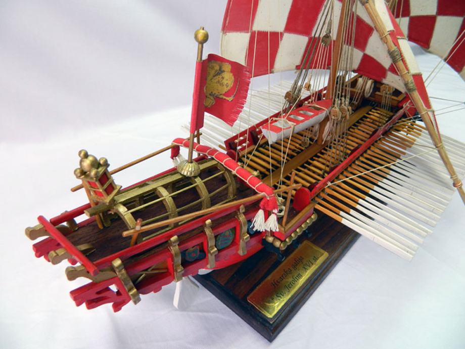 Hvarska galija sv. Jerolim pridružila se velikoj floti koju je Venecija spremila za odlučnu bitku za gospodarstvo na Mediteranu sa tad najmoćnijom državom na moru - Turskom. Hvar je poslao svoju galiju, dobro opremljenu i naoružanu. Pokretalo ju je 50 veslača koji su ujedno bili i ratnici. Osim veslima, pokretala se i sa dva velika šarena latinska jedra. Cijela galija bila je obojena kričavom crvenom bojom čime se činila još jača i snažnija, a šarena jedra bojana crveno-bijelo bila su vidljiva izdaleka. Na glavnom jarbolu vijorila se zastava sv. Stjepana, zaštitnika grada Hvara, a na krmenom kasaru bila je ukrašena papskim, kuće Hektorovića, kuće Paladini i grbom jednog španjolskog plemića. Na pramcu Hvarske galije nalazio se pulena krilatog zmaja koja se i danas čuva u hvarskom arsenalu kao simbol nekadašnjeg junaštva hvarskih mornara, boraca i zapovjednika.