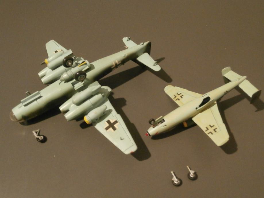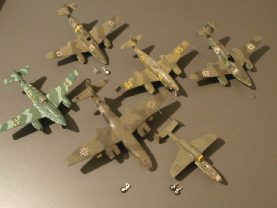 Ar-234 i He-162 su OK, samo treba naljepiti kotače. Preostale 4 makete su Me-262, nisu cijele ali se može bar jedna sklopiti.