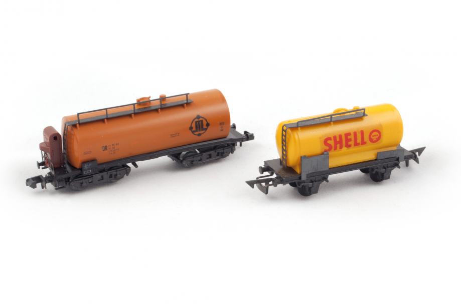 Model vagona cisterne "Deutsche Reichsbahn" DR ((istočno) Njemačke državne željeznice) i cisterna nepoznate prevozničke tvrtke, Shell tvrtke.