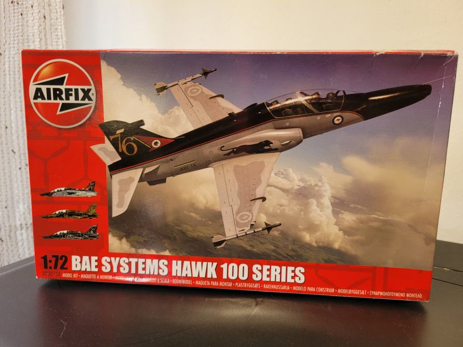 Plastična maketa modernog trenažno–borbenog aviona BAE Systems Hawk 100 Series u mjerilu 1/72. Kutija je dobra, komplet je nov i nekorišten, dijelovi su na okvirima.