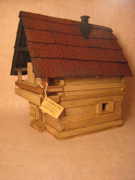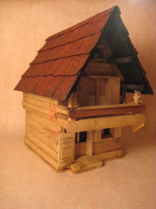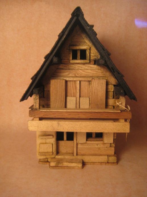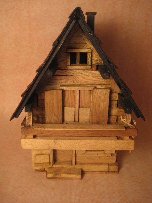 Maketa alpske kuće izrađena ručno od drveta.