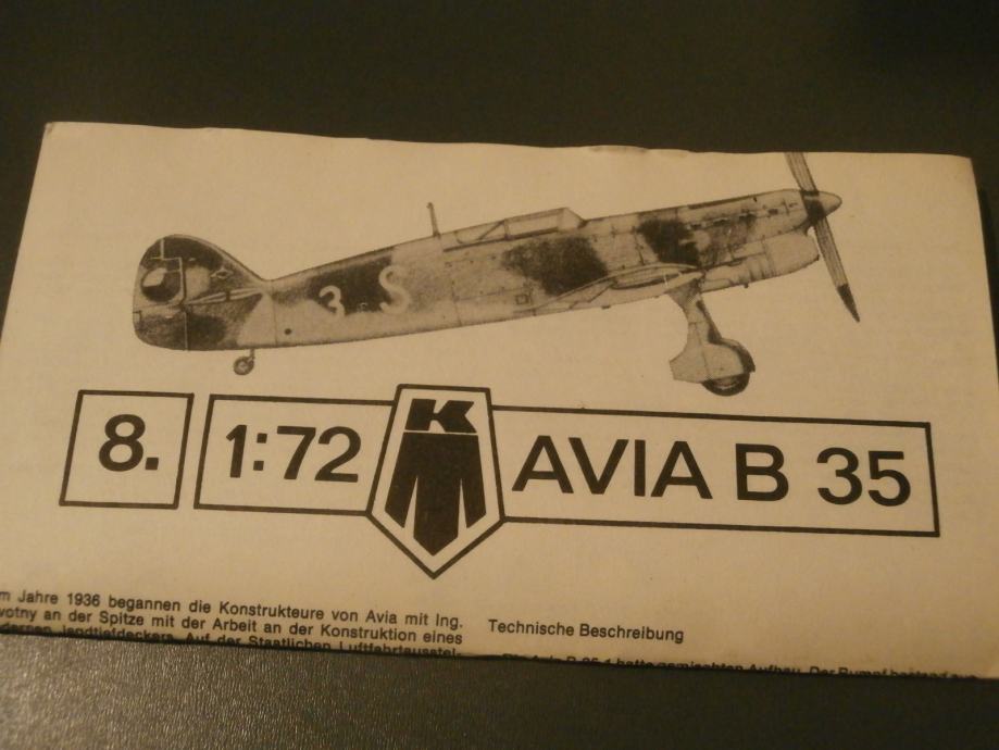 Prodajem maketu "Avia B-35", 1:72, firma KP