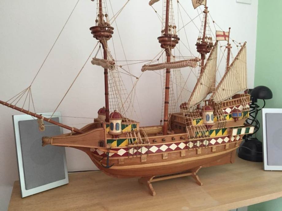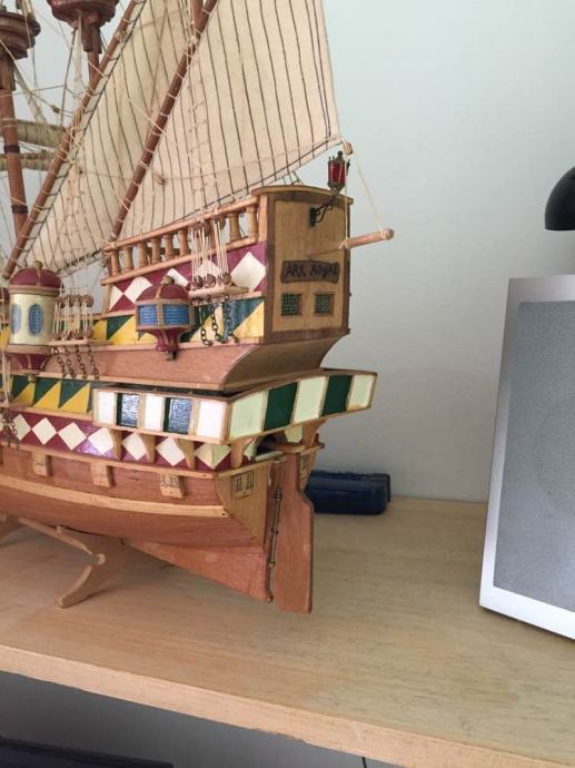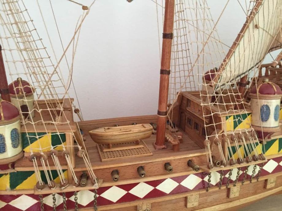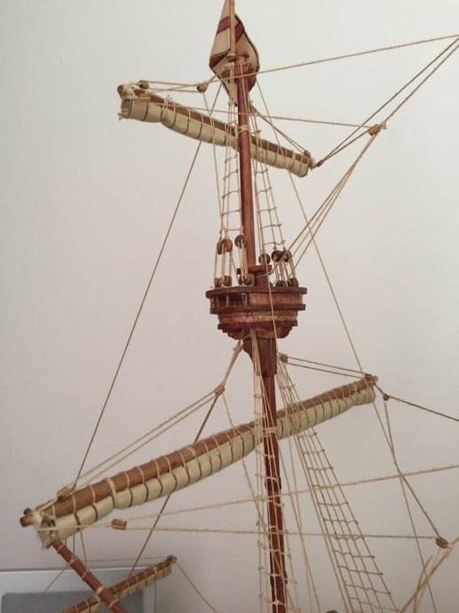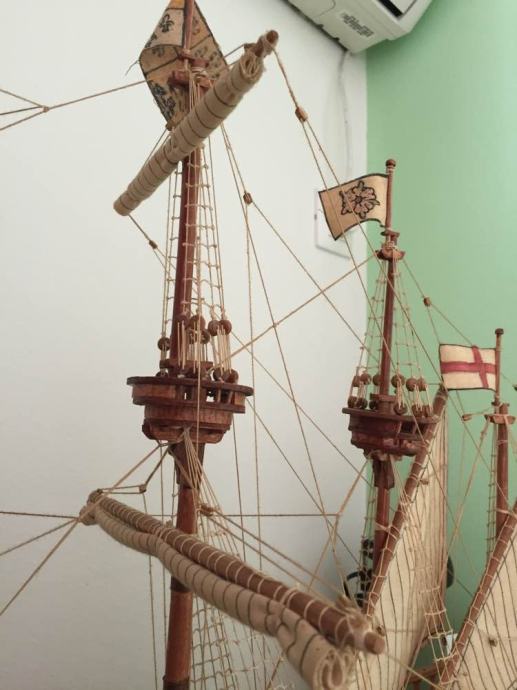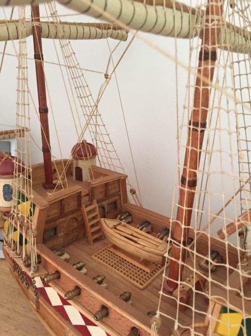 Duzina makete je 65 cm a visina od dna do vrha jarbola 62 cm.
