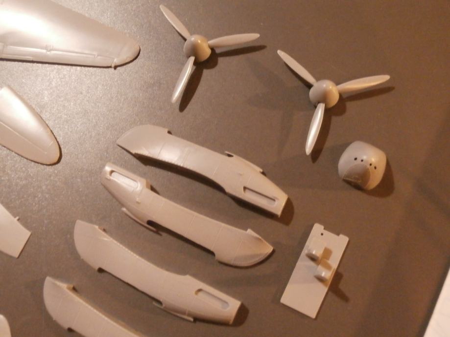 Dosta dijelova odvojeno sa stabla, propeleri i spineri već zaljepljeni (prikazano na fotografijama).