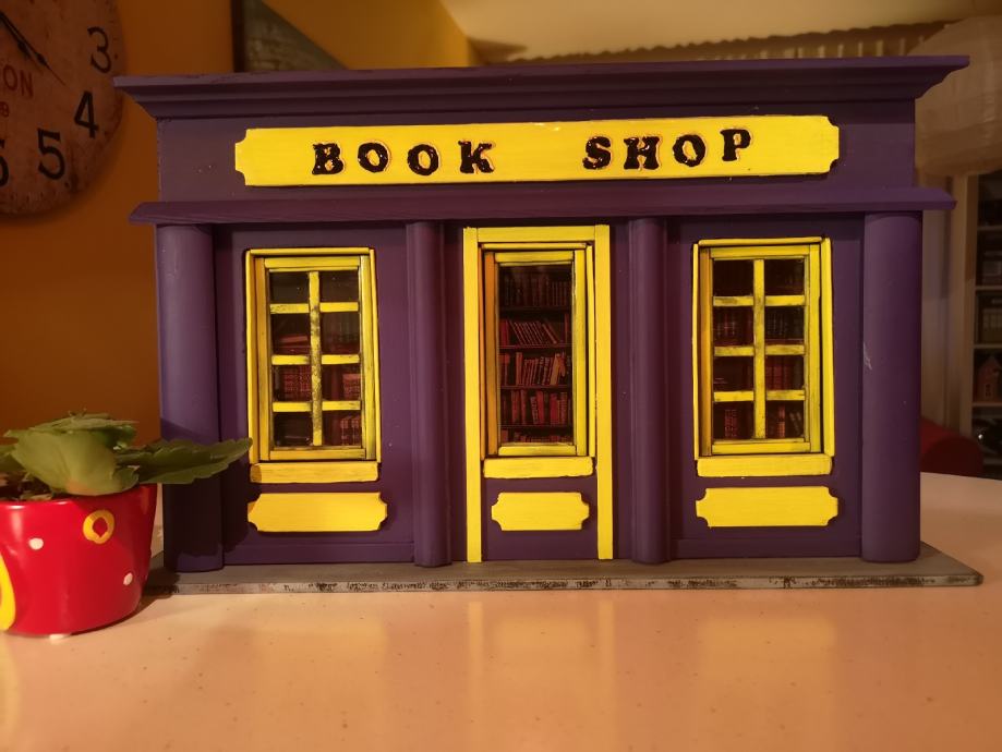 Svjetleća dekoracija, ručni rad, unikat, drvena maketa, knjižara, book shop. Dimenzije š 42 x v 25 x d 9 cm. Ne šaljem pouzećem