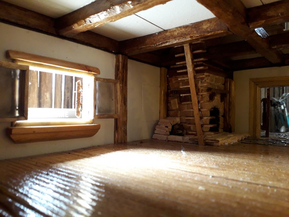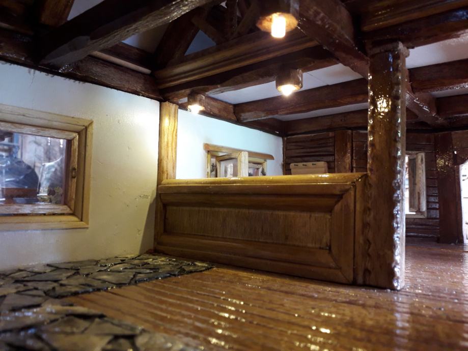 Maketa je izrađena u cijelosti ručno, od prirodnih materijala, velikim djelom korišteno je drvo balsa. Sa vanjskom i unutarnjom rasvjetom. Bilo je potrebno oko 600 sati rada da se izradi. Dimenzije makete su 80x60cm u mjerilu 1:22.