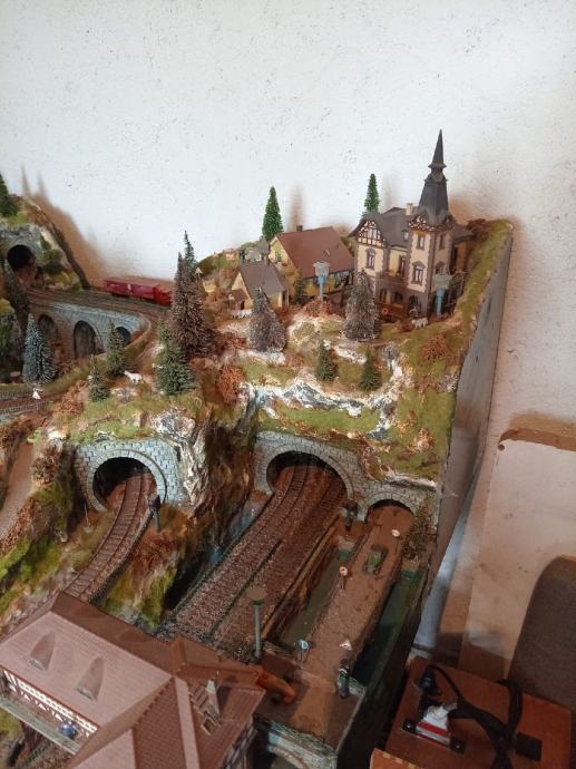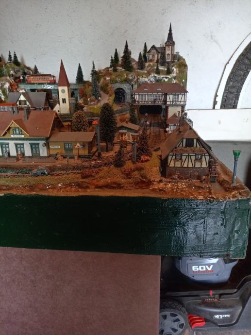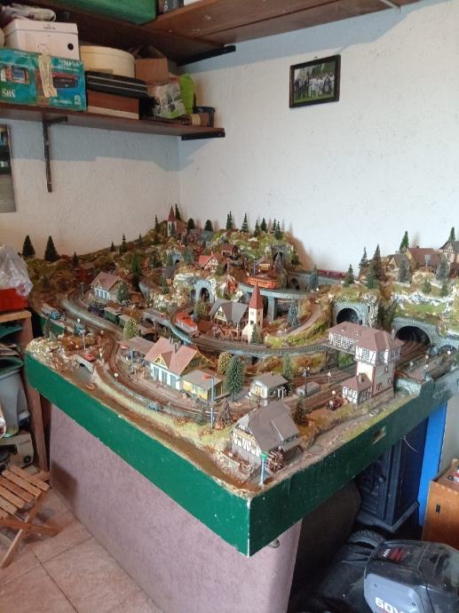Maketa,velika, izradio je prodavatelj, kvalitetna izrada, originalni detalji, uključene kućice, željeznica i vlakovi, svjetski poznatih proizvođača iz Njemačke i Amerike. Ima i vodeni element. Ispravna. U funkciji. Može se doći pogledati. Oko cijene može se napraviti dogovor. Detalji na mobitel 0959107554