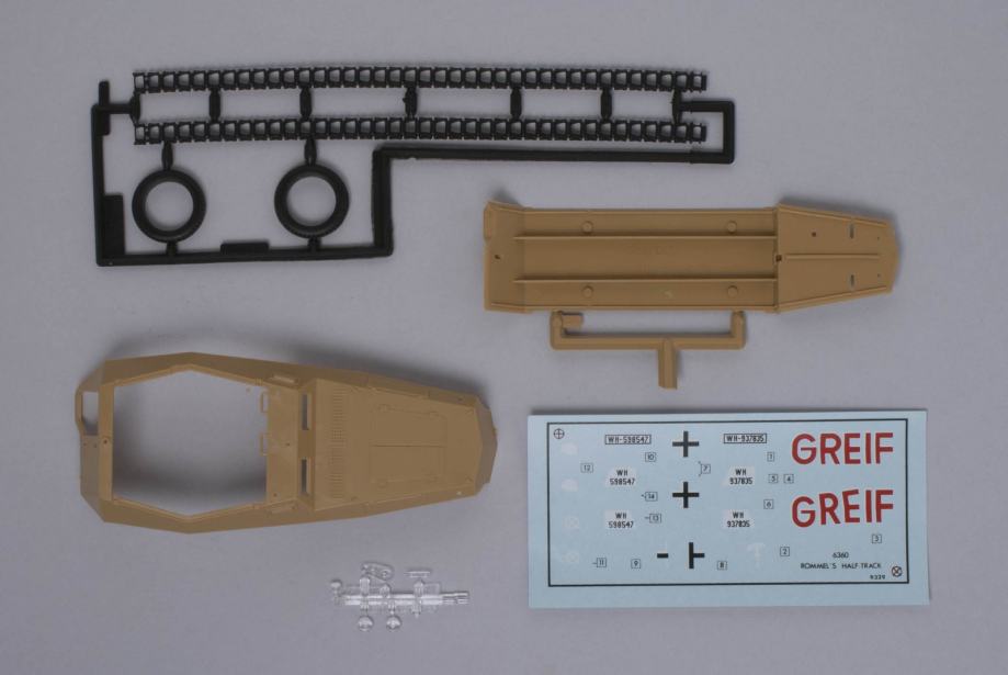 Maketa njemačkog oklopnog polugusjeničara Sd.Kfz. 250/5, koji je u sjevernoj Africi u Drugom svjetskom ratu, kao zapovjedno vozilo, koristio legendarni njemački zapovjednik „Afričkog korpusa” Maršal Erwin Rommel, prozvan Pustinjska Lisica. Dva polugusjeničara kojima se koristio Rommel nosili su oznake imena koji su im nadjenuli, Adler (Orao) i Greif (Grifon). Grifon, zvijer iz grčke mitologije ima tijelo lava i orlovu glavu. Maketa sadrži oznake, dekale (preslikače) za ”Greif”.