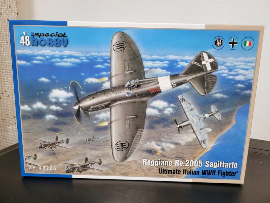 Plastična maketa talijanskog lovca Reggiane Re.2005 Sagittario – “Ultimate Italian WWII Fighter” u mjerilu 1/48. Riječ je o kitu Special Hobby Profi razine, novom i nekorištenom, s kompletnim dijelovima na okvirima i originalnim dekalima.