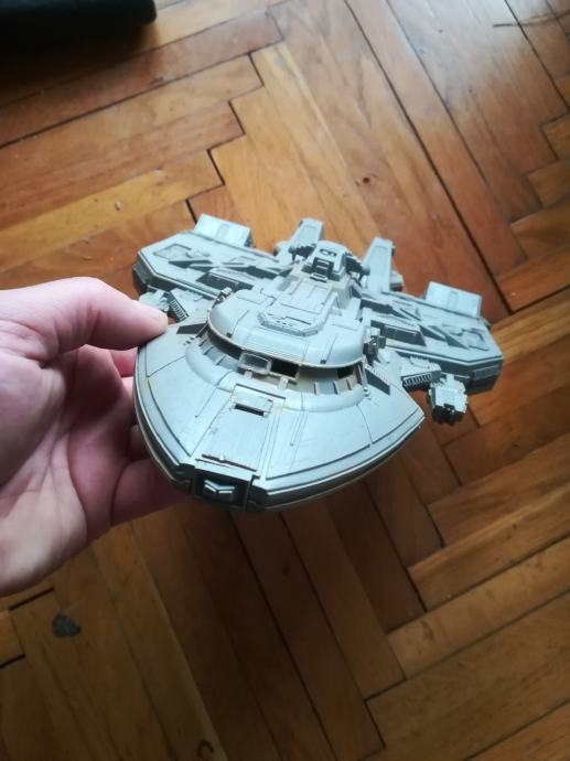 Igračka starinska maketa svemirskog broda. Cijena je fiksna. Na sms nemogu odgovoriti, najbolje bi bilo da me nazovete 099 687 5657 ili pošaljete poruku preko Njuškala. Svemirski brod.