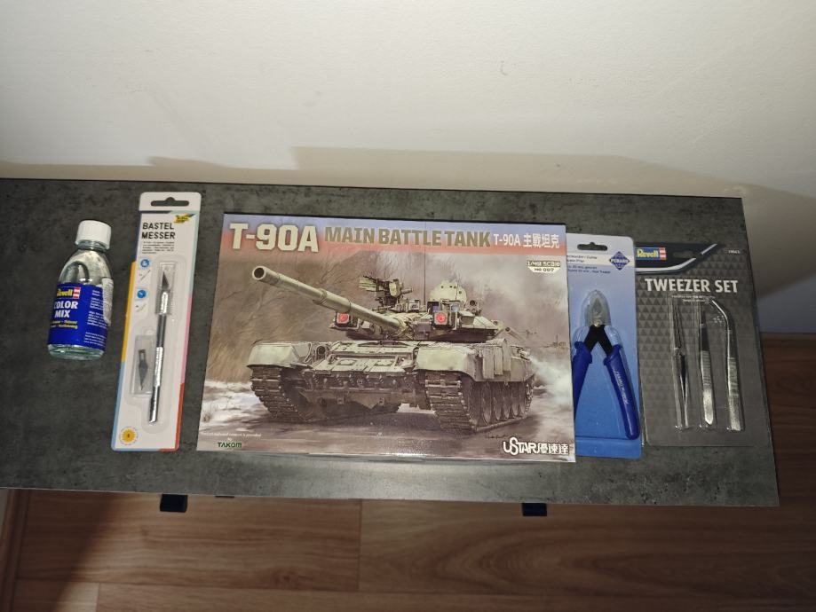 Prodajem pribor za maketiranje i maketu tenka T-90 ,veličina 1:48