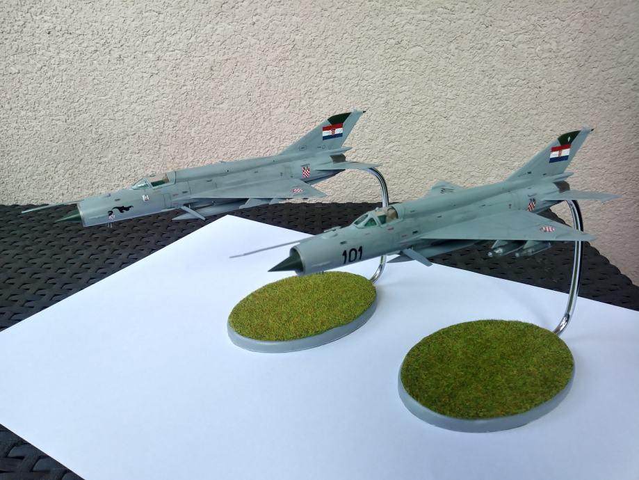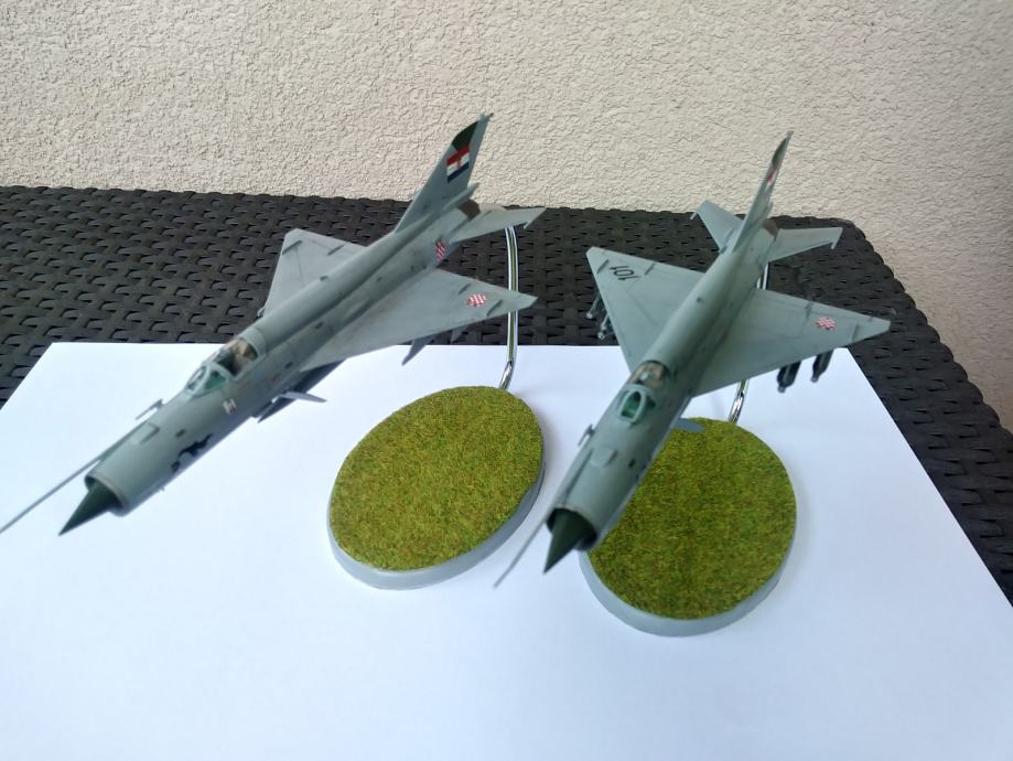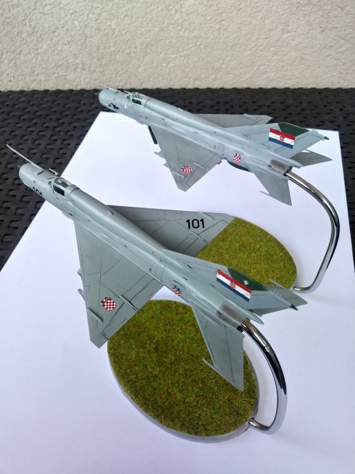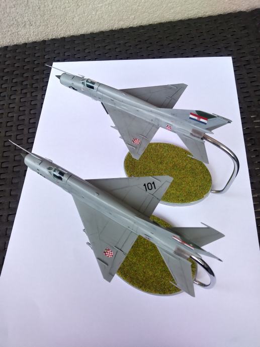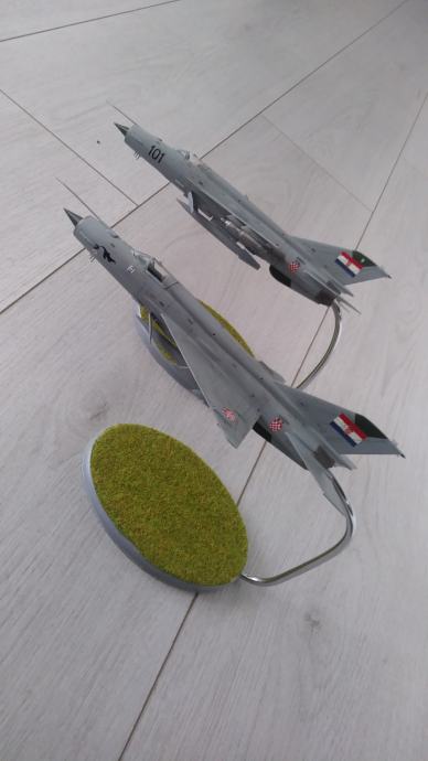 Prodajem dvije plasticne slozene makete hrvatskih mig 21 bis na stalcima. Cijena pojedinacno 300 kuna, a u kompletu oba dva 500 kuna. Mjerilo je 1/72, makete su dugacke oko 16 cm.