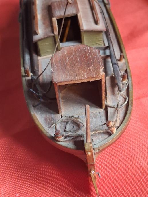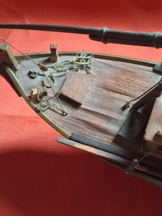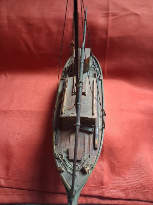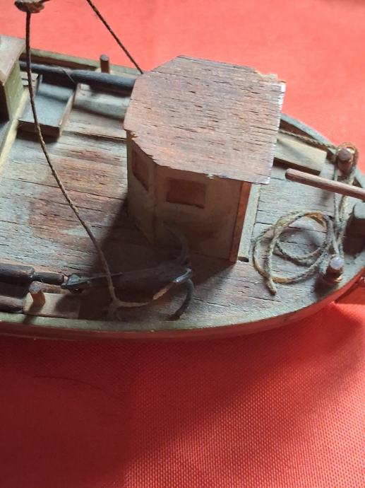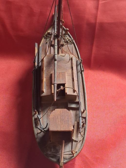 Maketa broda - od drveta, sav izrađen od dijelova, sa opremom ( konopci, sidro ,vesla),duž. 27 cm ,dobro očuvan.