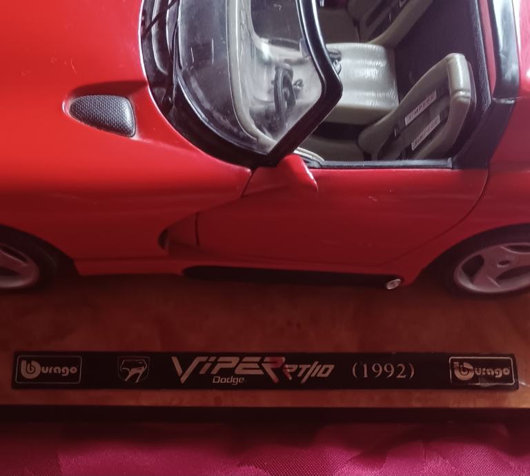 Dođe Viper Rt /10 ( 1992 ) - maketa automobila, original Burago ,na drvenom stalku, očuvan , duž. 24 cm.