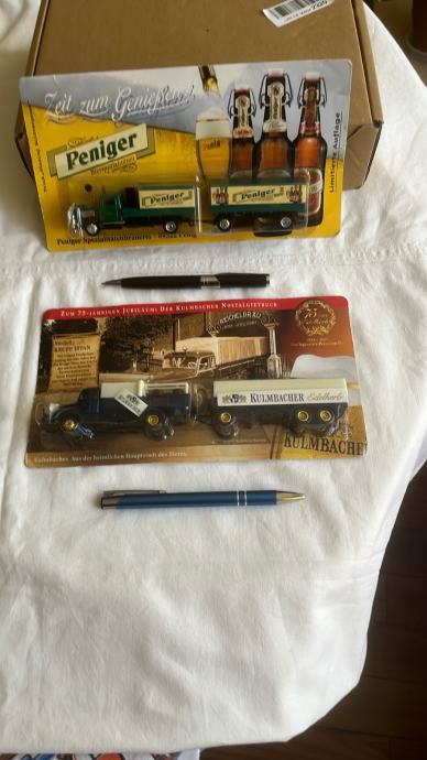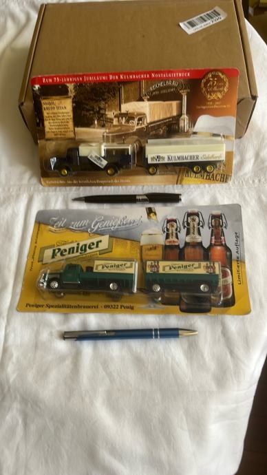 Prodajem 2 nove plastične makete njemačkih kamiona za prevoz piva. Original zapakirane, neotvarane za kolekcionare.