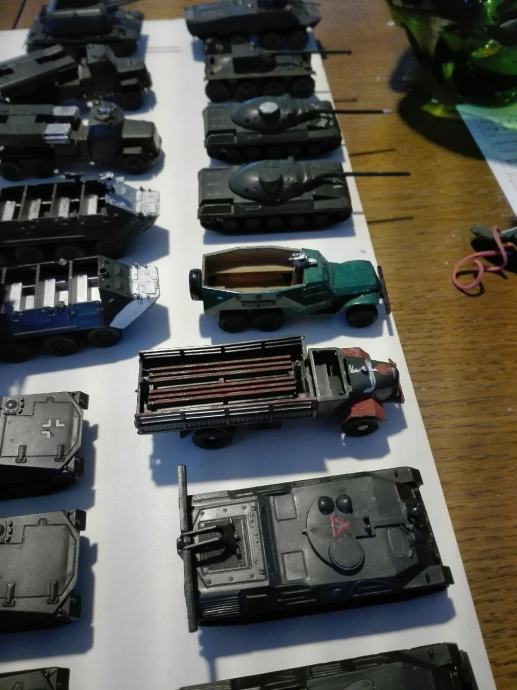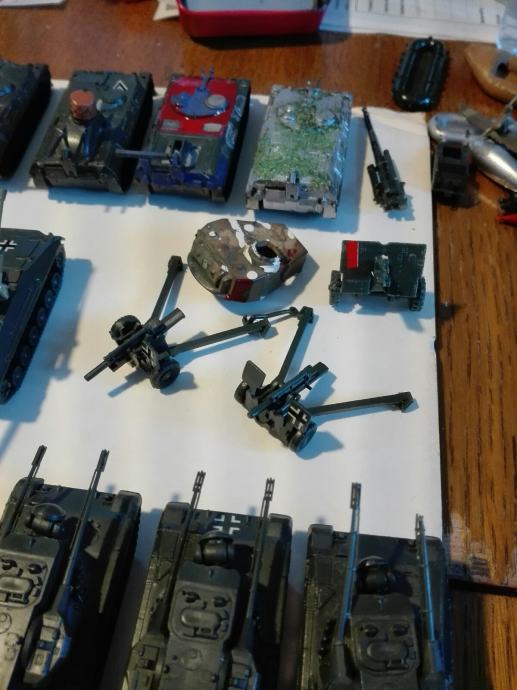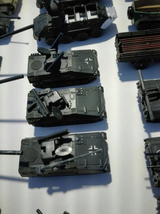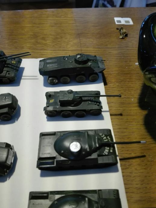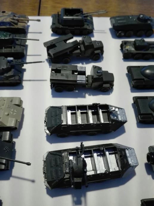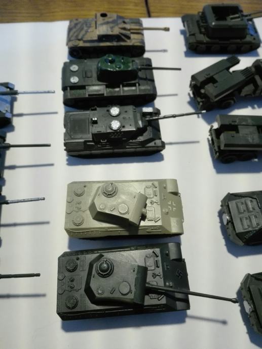 Makete tenkova i vozila. Dugački su između 7 i 8 cm. Neki su super očuvani, nekima fali dijelova. Jedan element (vozilo) košta 4eura! Cijena je fiksna. Na SMS nemogu odgovoriti, najbolje bi bilo da me nazovete 099 687 5657 ili pošaljete poruku preko Njuškala.