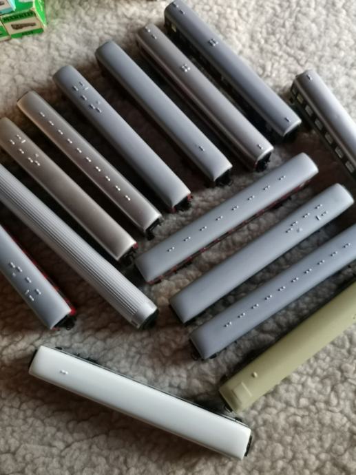 Cijene su od 5 eura, pa na dalje... uglavnom sve ide ispod cijene, jer nemam više prostora gdje to držati... ako pogledate ostale moje oglase, ima tu još lokomotiva, teretnih i putničkih vagona, tračnica, skretnica, kućica, zgrada, kolodvora, transformatora raznih jačina i snage , te svega što ide uz makete takvog tipa...