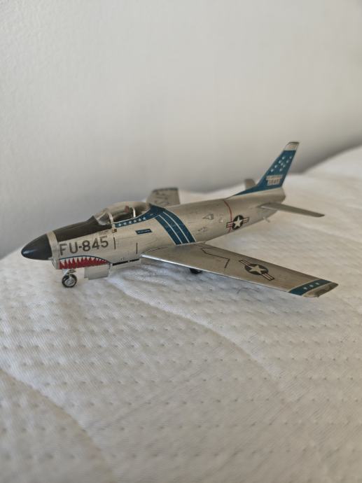Složena maketa. Jedan od prvih američkih mlaznih lovaca. Sudjelovao u Korejskom ratu. Imala ga i Jugoslavija. Preporučujem osobno preuzimanje u Zagrebu jer je slanje paketom jako nesigurno. Primopredaja po dogovoru. Plaćanje cash. Slobodno kontaktirati radi dogovora o detaljima i dodatnih informacija. Napomena: NE KORISTIM PayProtect.