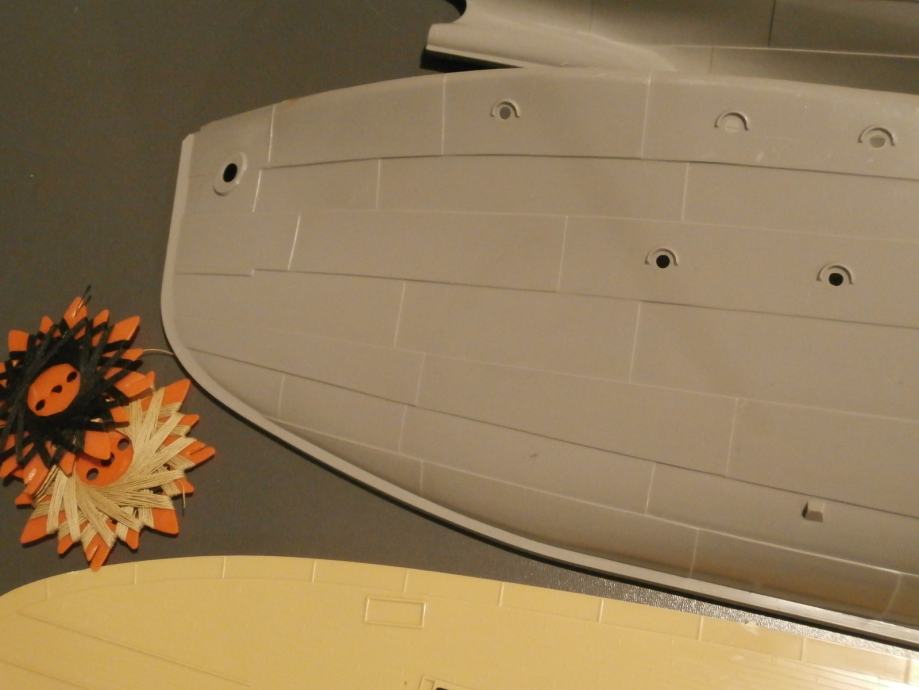 Ostalo sve OK. Unatoč veličini i mnogobrojnim dijelovima, čini se da omogućuje ugodno slaganje. Sadrži i ograde i lanac i zastavice i konopce i 15-tak figurica mornara. Dobar maketar može složiti vrhunsku maketu.