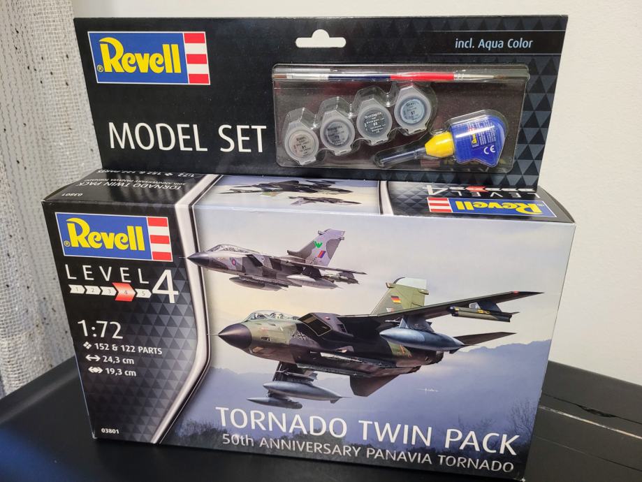 Prodajem Revell 1/72 “Tornado Twin Pack – 50th Anniversary Panavia Tornado” (03801) u kompletu s Revell Model Set blisterom (Aqua Color boje, kist i ljepilo), sve novo i potpuno neotvoreno.