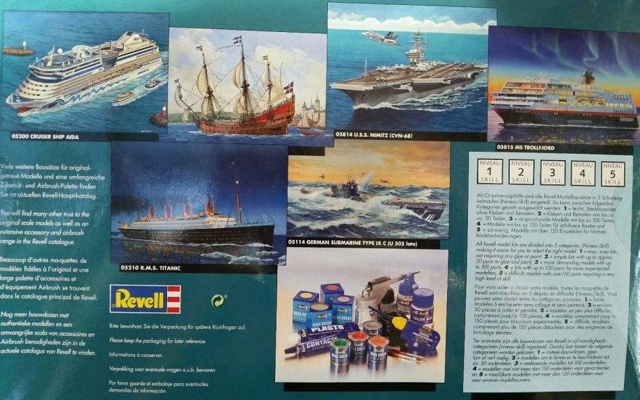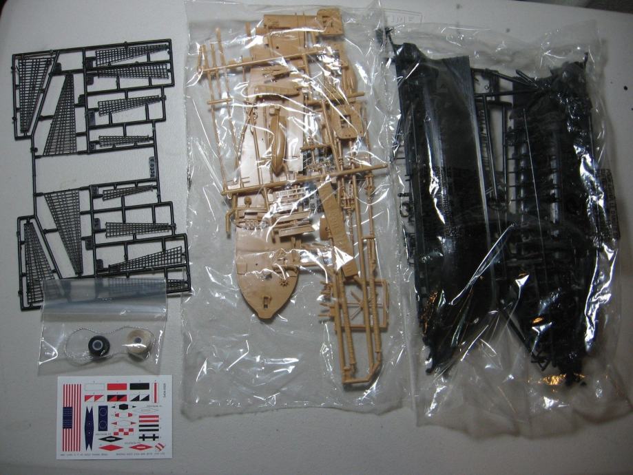Kompletna nesastavljena maketa sa nacrtima, zastavicama, jedrima i sl.
