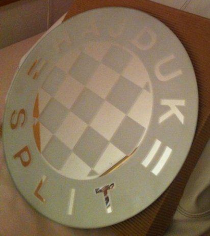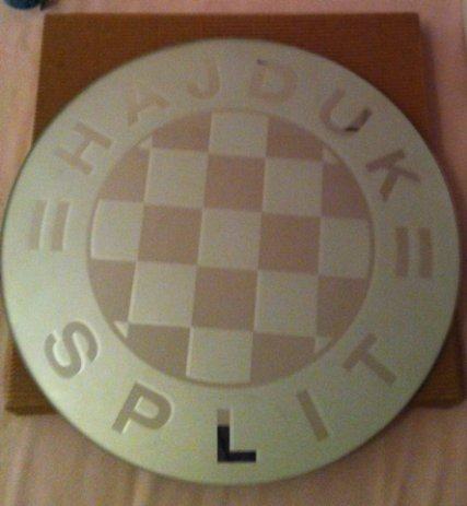 Prodajem unikatni grb NK Hajduk napravljen u kombinaciji mlijecnog i obicnog stakla. Dimenzije grba 30x30 cm.